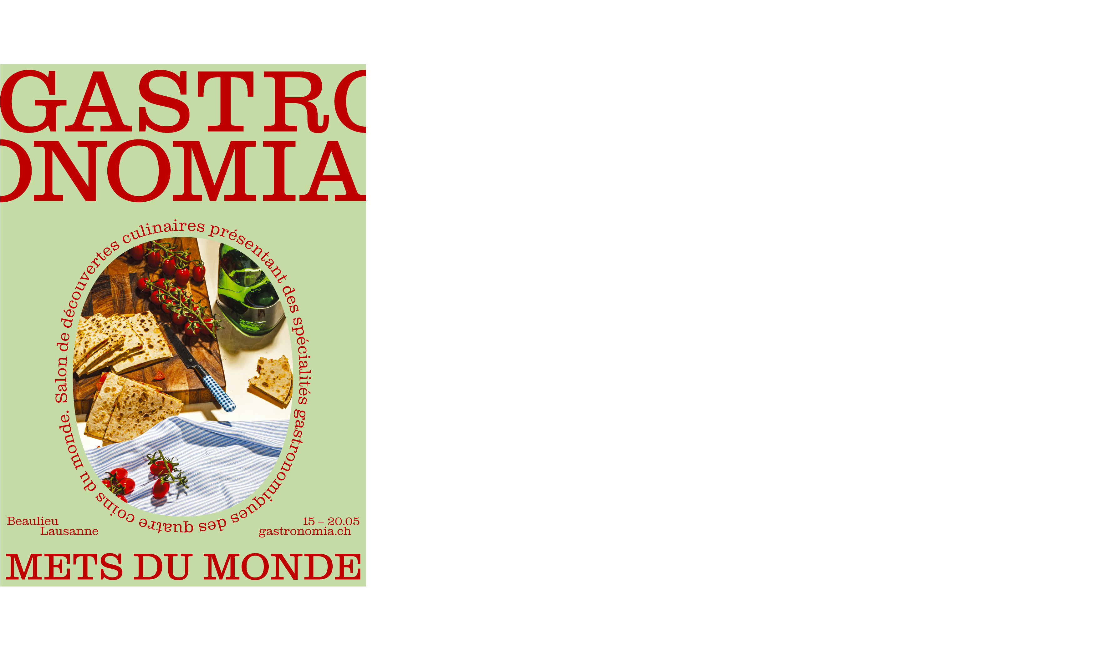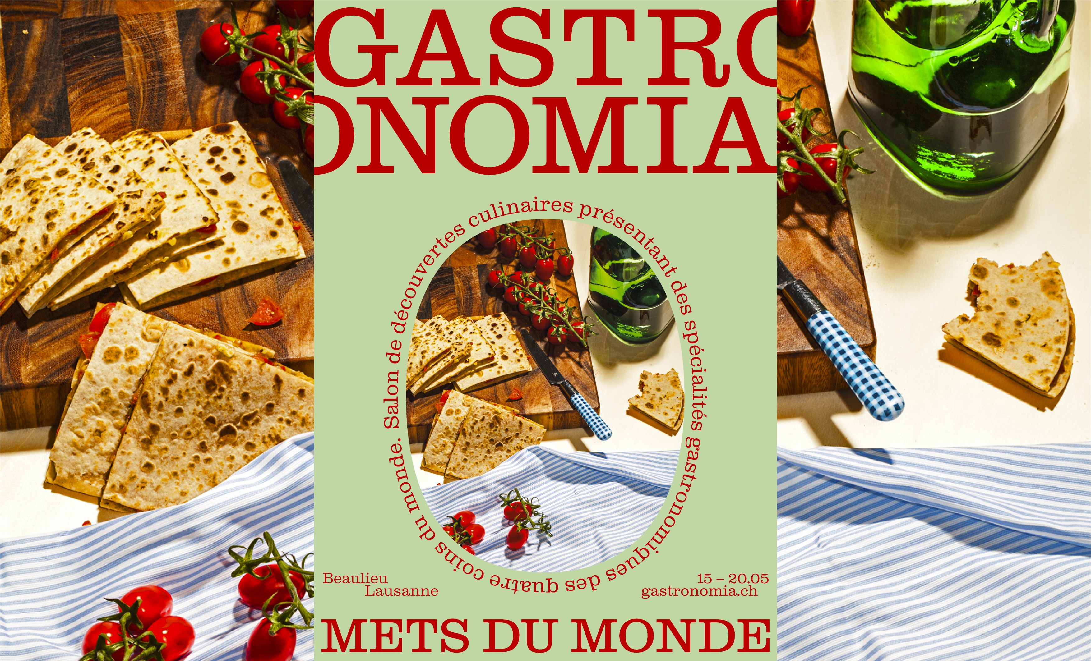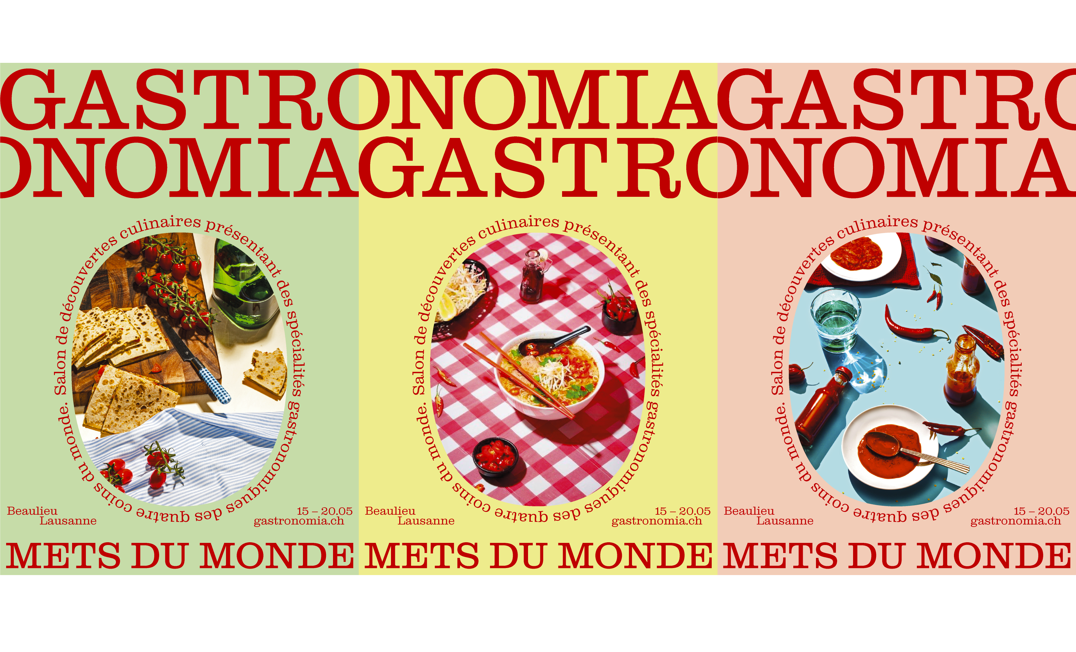 Complete visual identity for a gastronomic trade show featuring culinary specialties from all over the globe. All in a warm, festive atmosphere designed to appeal to both neophytes and enthusiasts, to reach a curious public hungry for new discoveries.